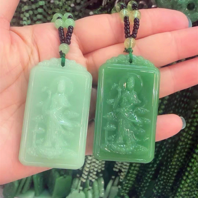Live Imitation Jasper Willow Branch Standing Guanyin Pendant for Men and Women Double-Sided Jade Pendant with Sweater Chain Pendant