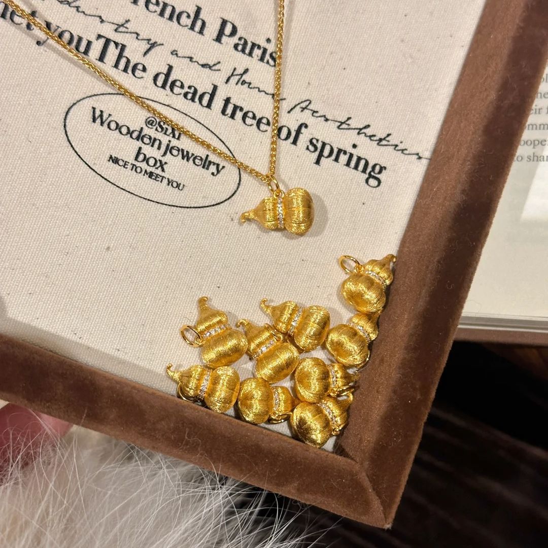 Light Luxury French Vintage Brushed Diamond Pumpkin Gourd Necklace Exquisite Ancient New Chinese Unique Exquisite Pendant for Women