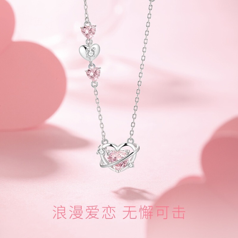 Love Heartbeat Necklace Women's 2024 New Explosive Light Luxury Niche Sweet Cool Clavicle Chain Girlfriend Pendant