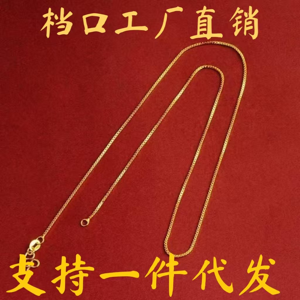 Vietnamese Sand Gold Copper Gold-Plated 45 Long Box Chain Classic Versatile Women's Clavicle Necklace Live Cross-Border Wholesale