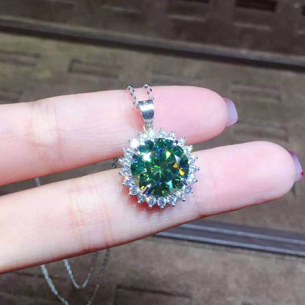 2 Karat Eight Heart and Eight Arrows Plated PT950 Simulation Blue and Green Mosan Diamond Pendant Women's Live First Jewelry Clavicle Necklace