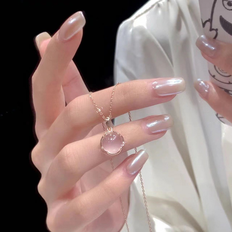 S925 Sterling Silver Simple Versatile Geometric Oval Jelly Opal Pendant Niche Light Luxury High-End Round Clavicle Chain for Women