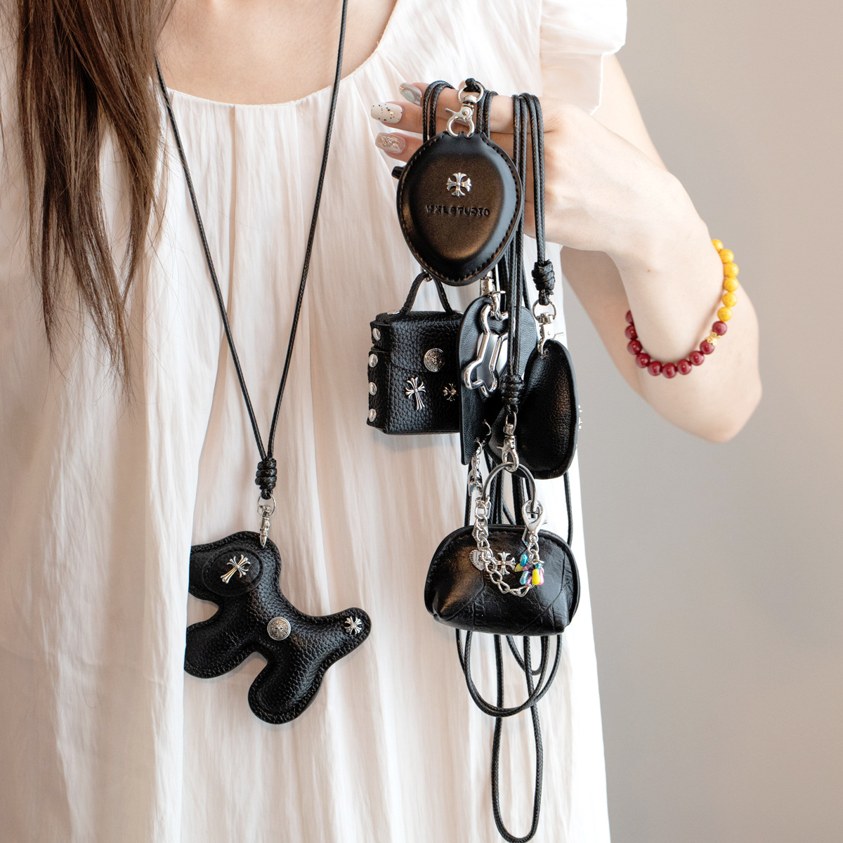 Korean Fashion Halter Accessories Black Leather Magnetic Cross Rivet Pendant Wax Rope Necklace Sweet Sweater Chain for Women