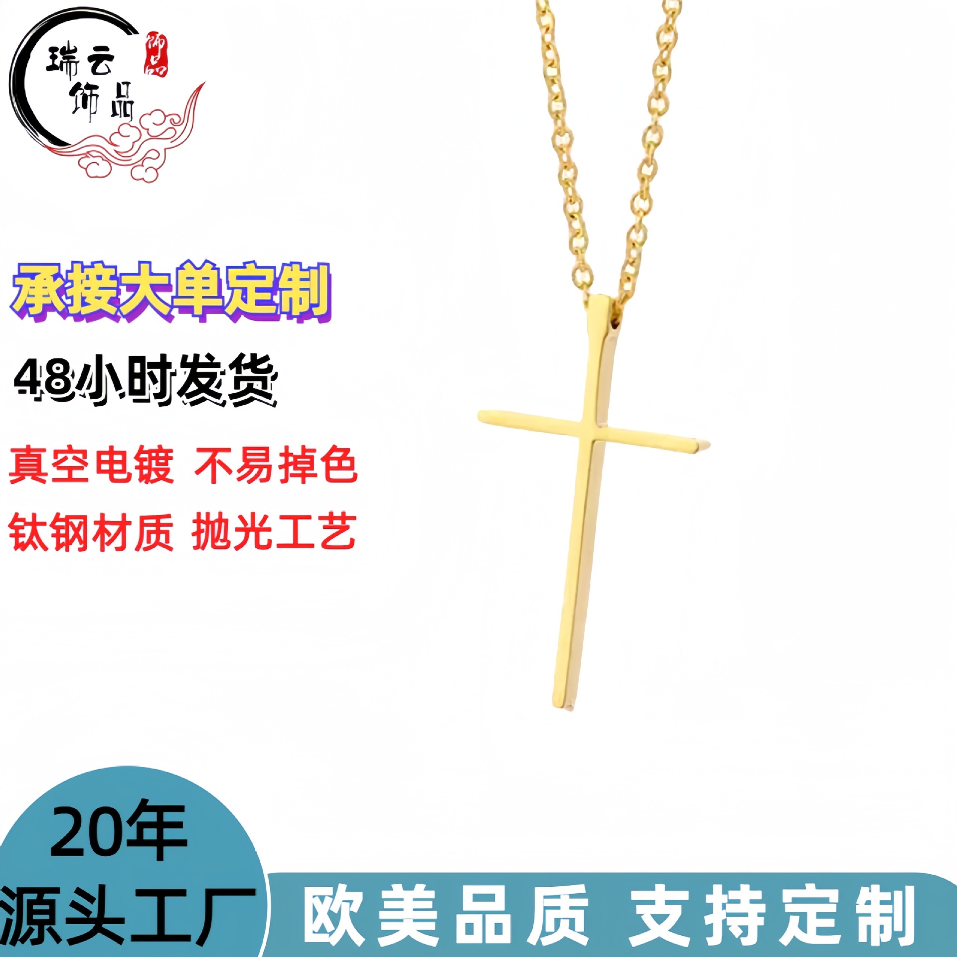 Women's Collarbone Chain Korean Style Stainless Steel Jewelry Korean Style Simple Smooth Necklace Collarbone Stainless Steel Cross Necklace