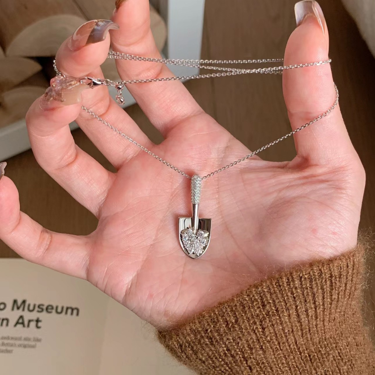 New Silver Shovel Necklace Women's Light Luxury High-end Niche Design Diamond-encrusted Collarbone Chain for Girlfriend Valentine's Day Gift
