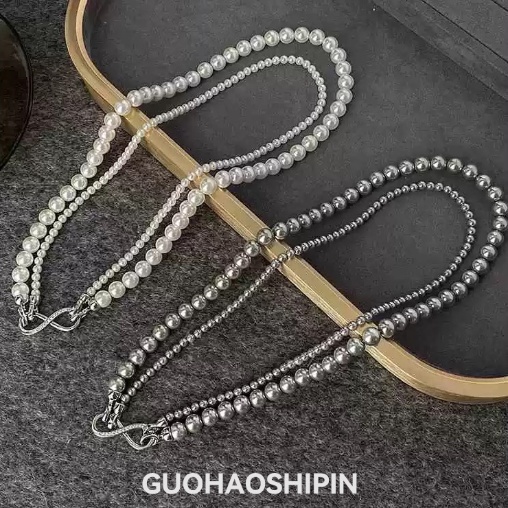 Shijia Glass Beads Double Layer Stacked Pearl Necklace Women's Light Luxury Elegant Clavicle Chain Autumn and Winter Woolen Chain Jewelry Wholesale