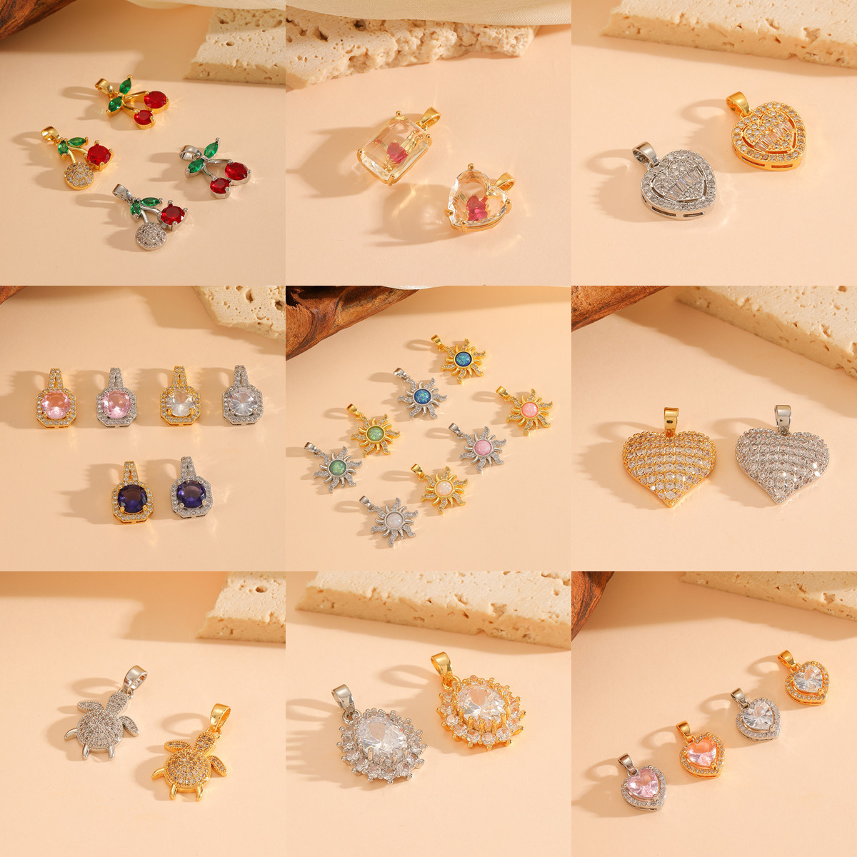 Various Styles of Copper Pendants in Gold and Silver, Versatile and High-End, Featuring Animals, Cherry Blossoms, and Simple Diamond-Encrusted Pendants for Women