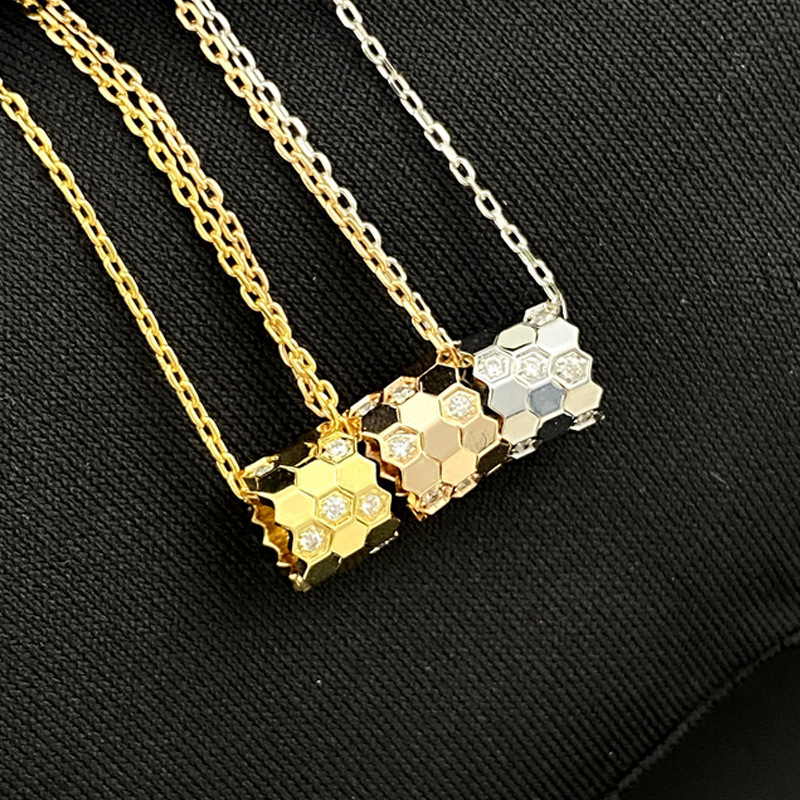 Honeycomb Necklace for Women Cnc Craft Hexagonal Honeycomb Pendant 18K Rose Gold Simple Honeycomb Necklace Same Style as Shangjia