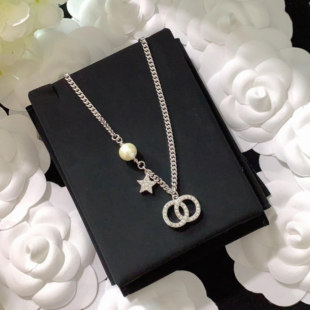Tweed Style Double C Star Pearl Necklace Women's Niche Design Light Luxury Superman Irregular Pendant