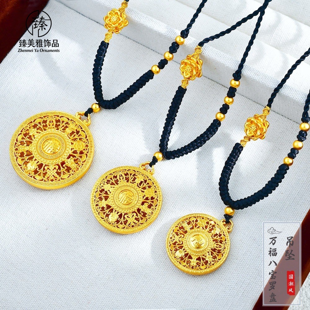 High Color Retention Copper Gold-Plated Wanfu Eight-Treasure Compass Pendant Women's Necklace with the Word "Fu" Compass Hollow Sweater Chain