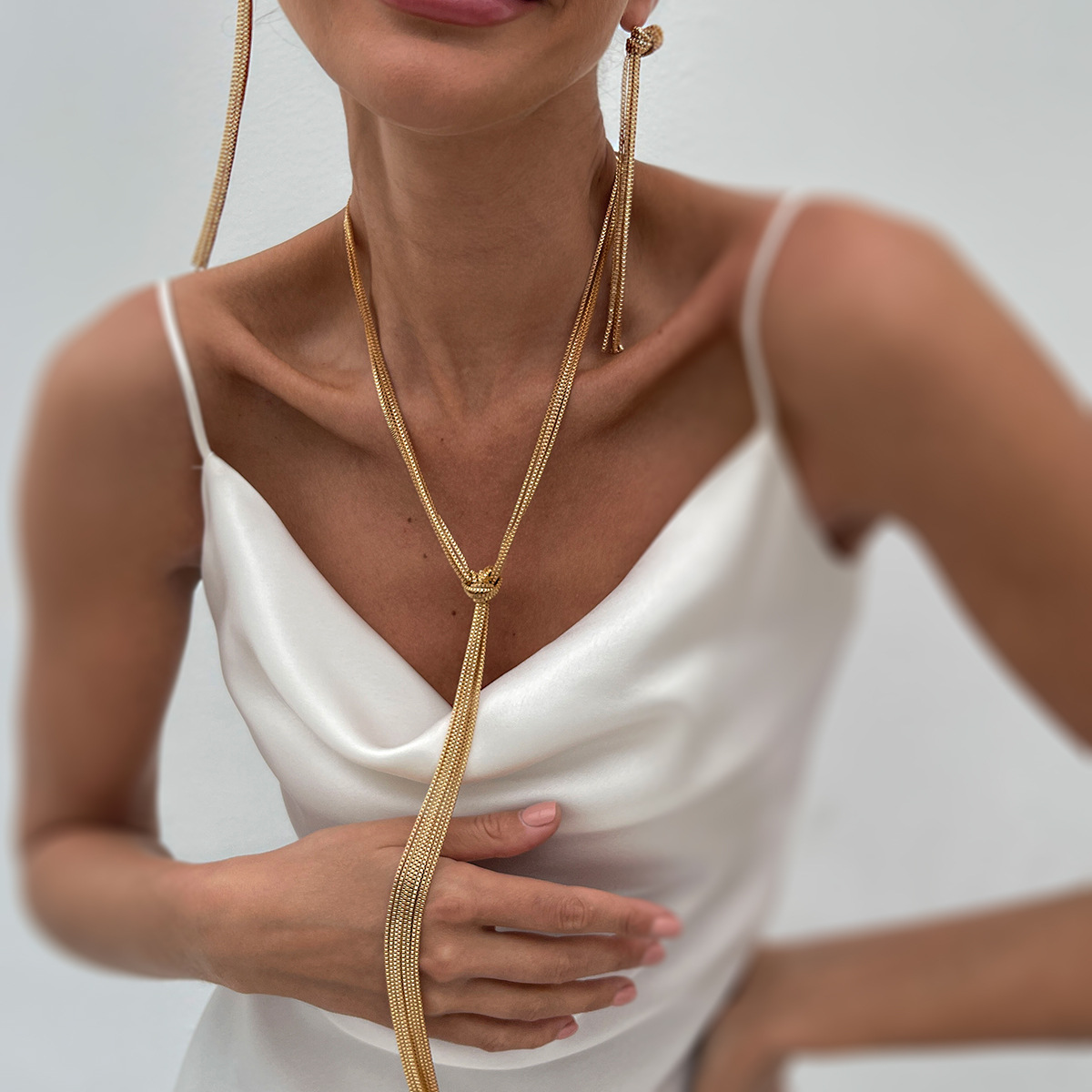 European and American Cross-border Simple Business Long Knot Tassel Necklace Fashion Multi-layer Y-shaped Design Sense Chain Necklace for Women