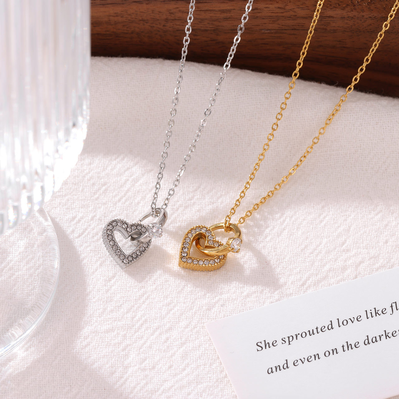 Light Luxury Love Heart Titanium Steel Necklace Women's Versatile New Clavicle Chain 18K Gold Plated Simple Elegant Peach Heart Necklace