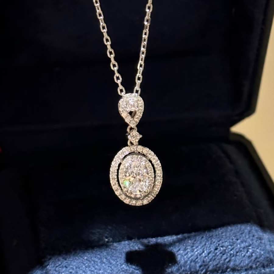 Sparkling Pavé Pigeon Egg Pendant Necklace for Women, High-End Luxury Niche Exquisite Versatile High-Carbon Diamond Collarbone Chain for Women