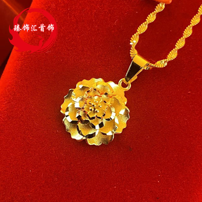 Vietnam Sand Gold Peony Flower Necklace Women's Color-free All-match High-end Pendant Copper Gold-plated Pendant