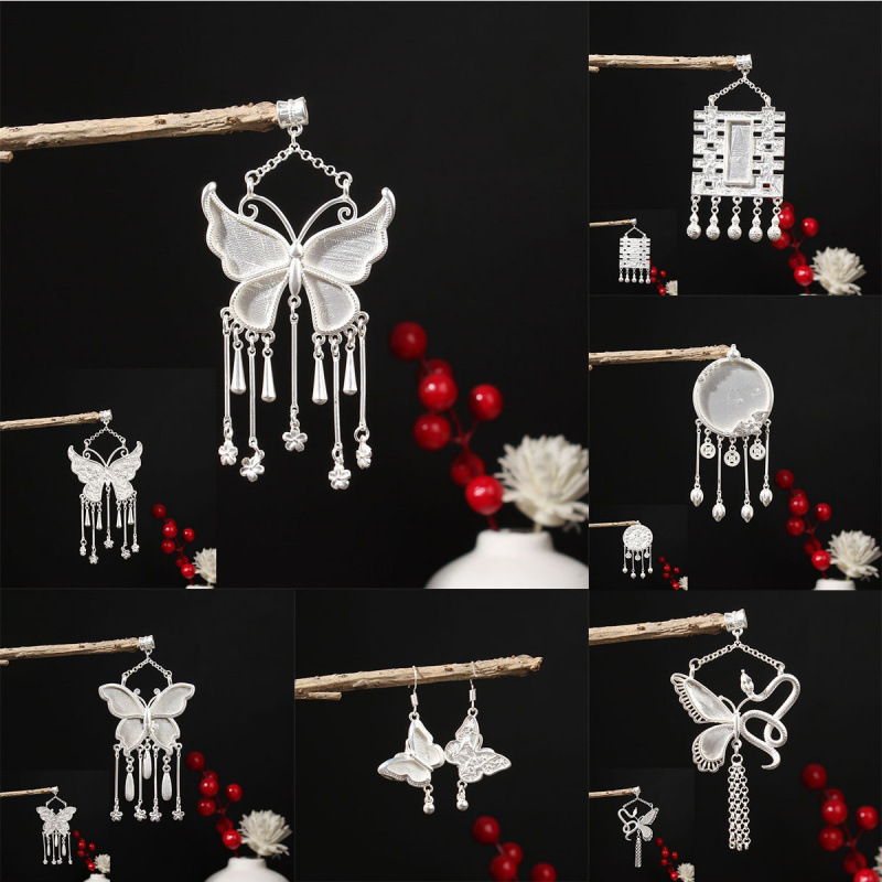 Handmade Miao Silver DIY Jewelry, Silver Base for Women, Ethnic Style Embroidered Pendant, New Butterfly Longevity Lock