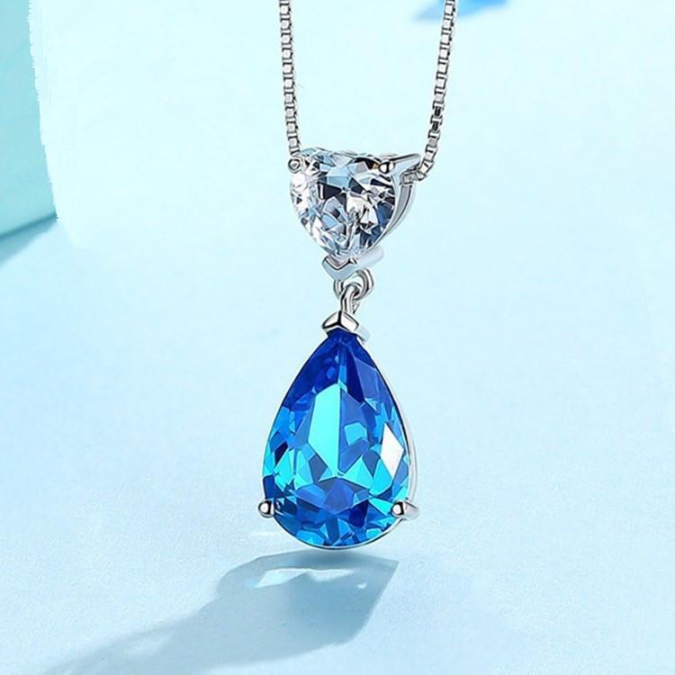 s925 Sterling Silver Ocean heart topaz pendant female European and American wind water drop heart-shaped white zircon necklace jewelry wholesale