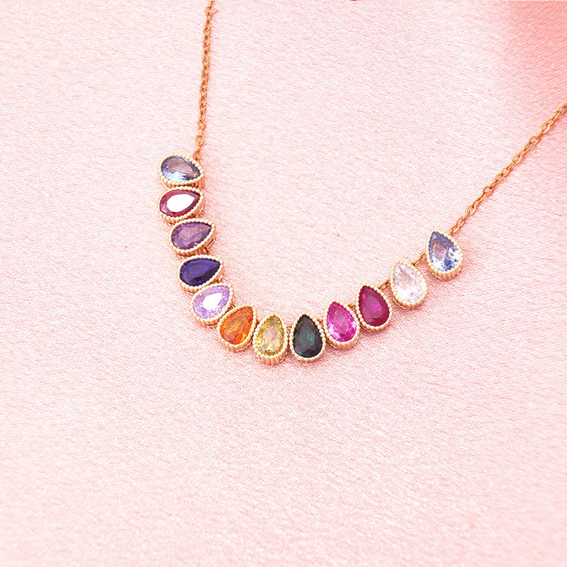 European and American Best-Selling Twelve Birth Stone Necklace Women's Personalized Water Drop Pendant Clavicle Chain Holiday Gift Wholesale New Product