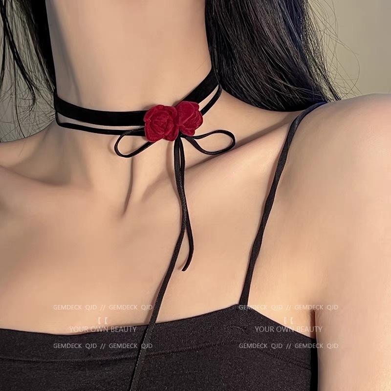 Retro Red Velvet flower collar women's French elegant elegant clavicle chain neck strap niche design choker