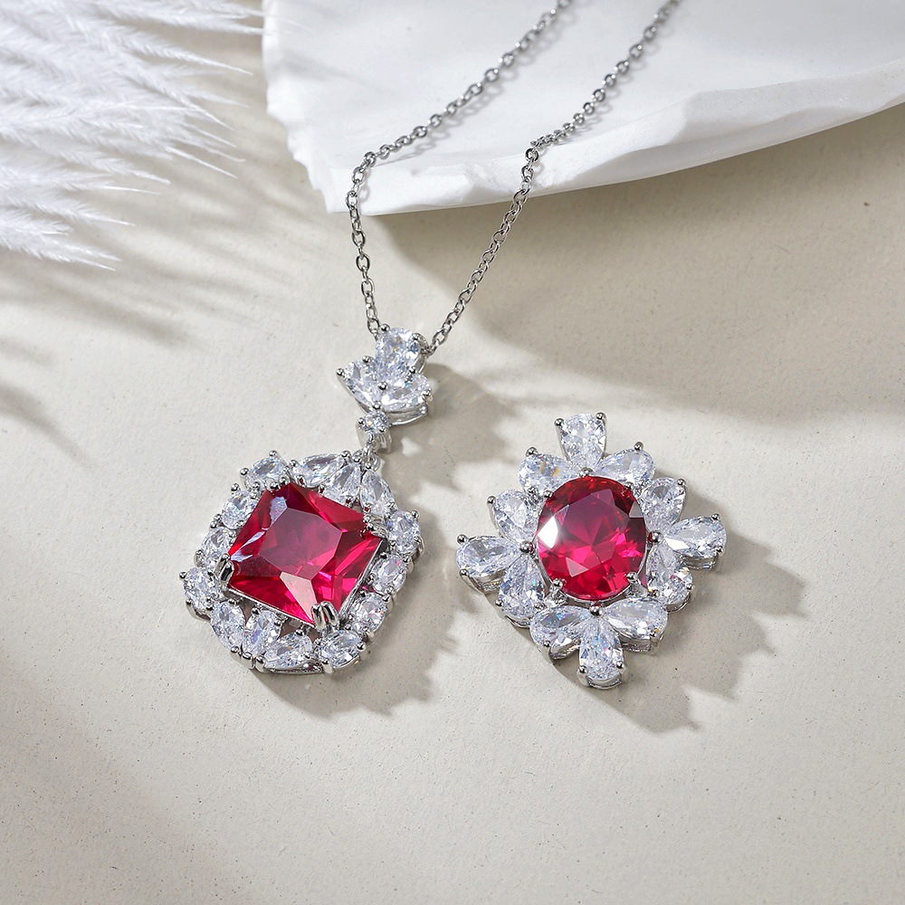 Synthetic Ruby Pendant for Women, High-End, High-Quality Zircon Inlaid Sweater Pendant, Pigeon Blood Red Corundum Pendant