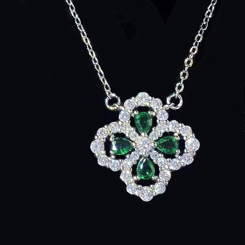 Classic Four-Leaf Clover Necklace for Women, Silver-Plated, Colorful Treasure Clavicle Chain, Simple Pink Diamond Necklace, Drop Shipping