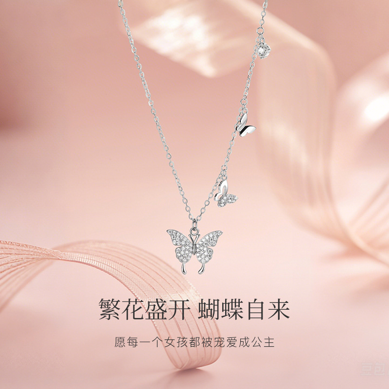 Butterfly Necklace for Women S925 Sterling Silver Niche Elegant Accessible Luxury Fairy High-End Clavicle Chain Necklace as a Gift for Girlfriend