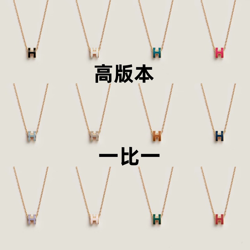 High Version Aijia miniH Letter Necklace Female CNC Carved Technology Thick 18K Gold Plating Enamel Mini Clavicle Chain