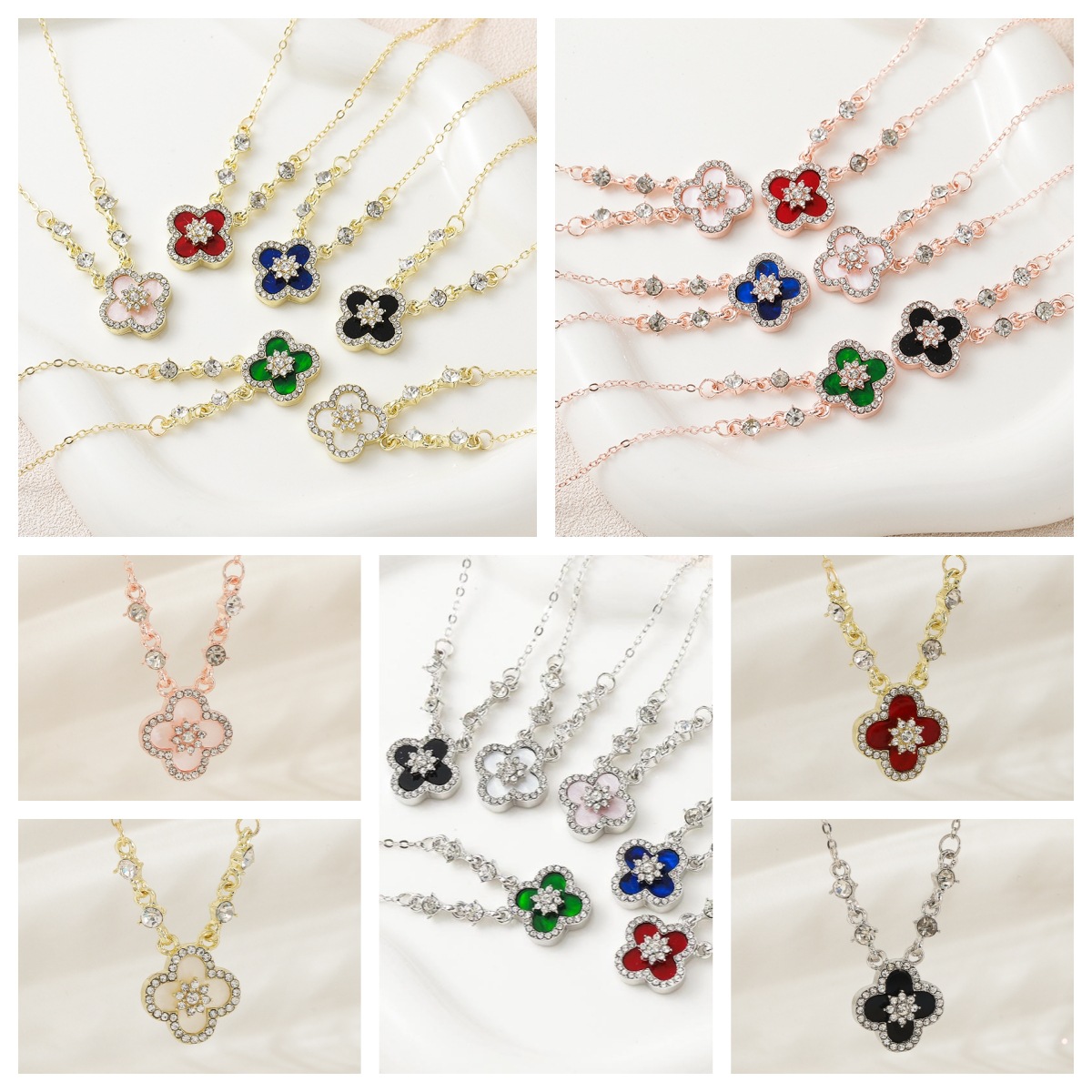 [Titanium steel] net red necklace does not fade four-leaf clover micro-inlaid zircon summer fashion double-sided Joker high-end female