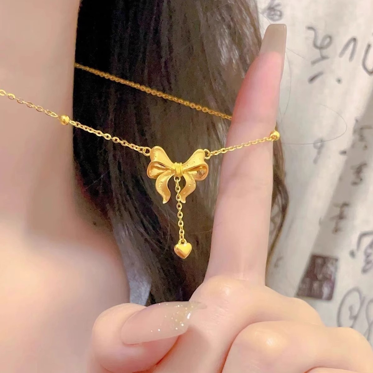 Princess on the Run Necklace Female Bow Temperament Internet Celebrity Super Realistic Gold Titanium Steel Clavicle Chain