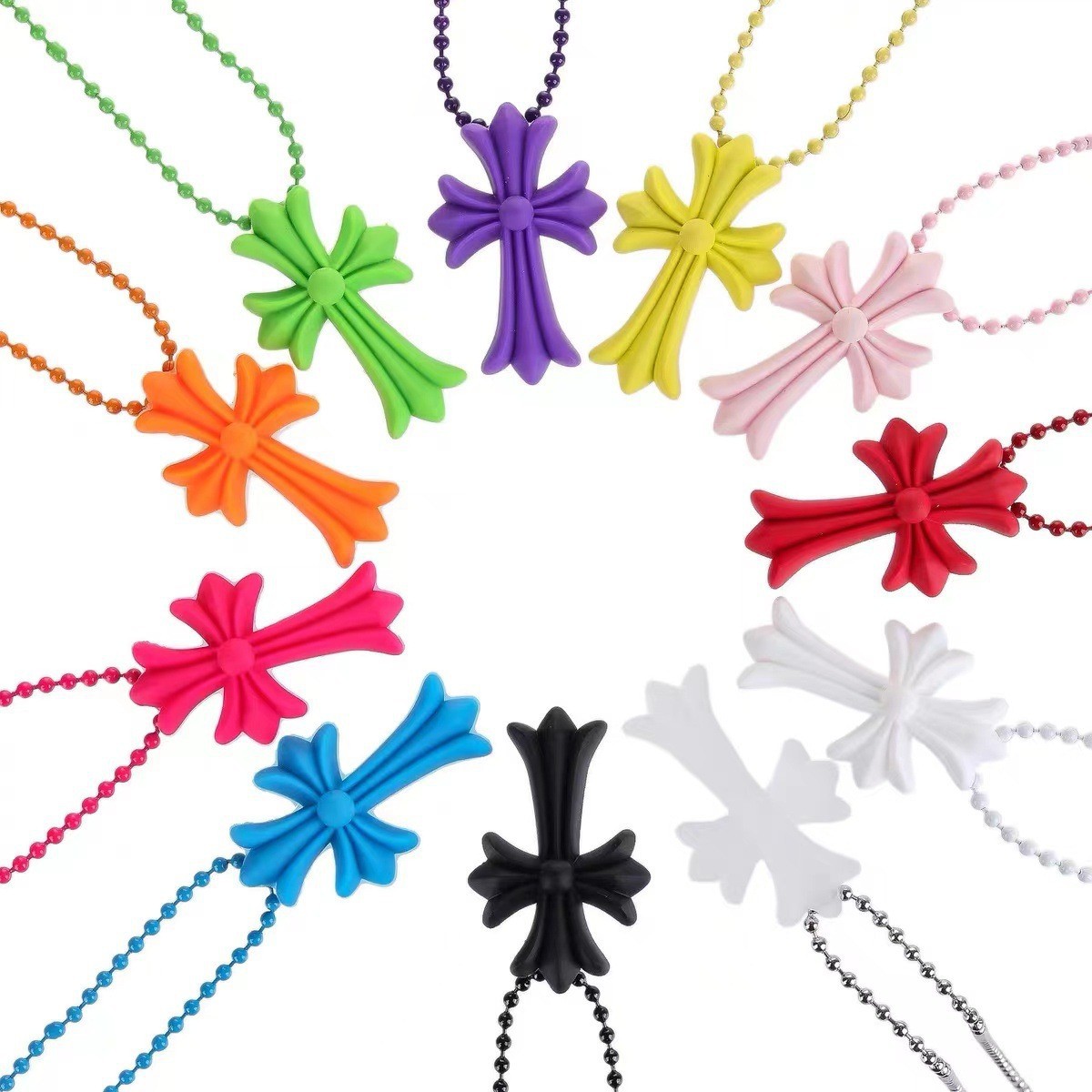2023 New Hip Hop colorful cross necklace women's age-reducing trendy all-match color optional source wholesale