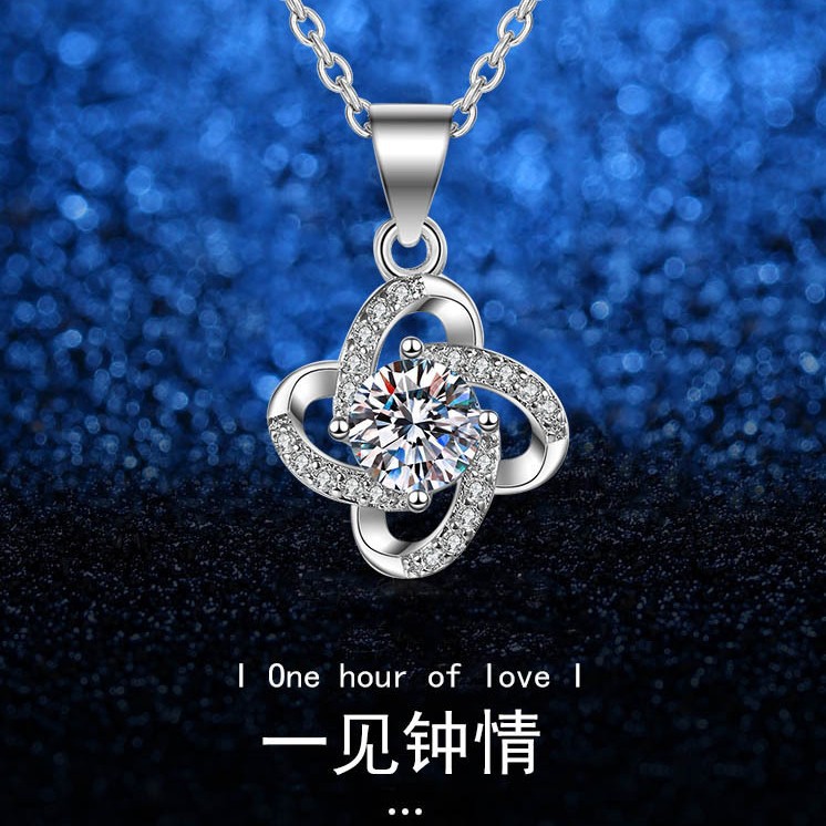 S925 Silver Necklace Women's Four-leaf Clover Pendant Korean Style Student Simple Clavicle Chain Birthday Gift for Girlfriend
