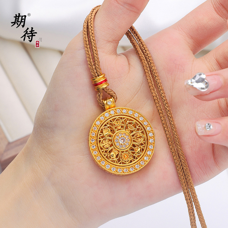 Gold Store Same Style Sand Gold Full Diamond Auspicious Eight Treasures Compass New Chinoiserie Cut Out Carved Rotating Compass Pendant Necklace for Women