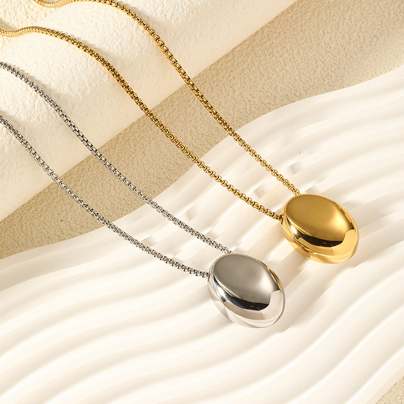 Oval Pendant Light Luxury Niche Fashion Personalized Titanium Steel Necklace Women's Long High-end New Style Color-free Woolen Chain