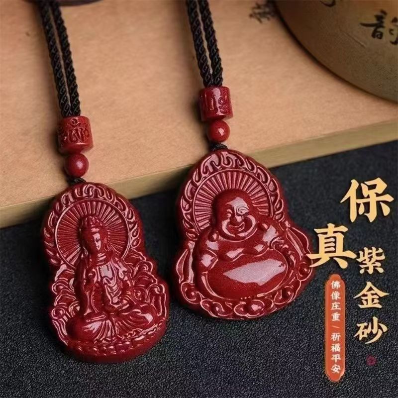 Cinnabar Guanyin Buddha Pendant Couple Style Maitreya Buddha Purple Gold Sand Zodiac Year Laughing Buddha Gift Pendant Live Wholesale