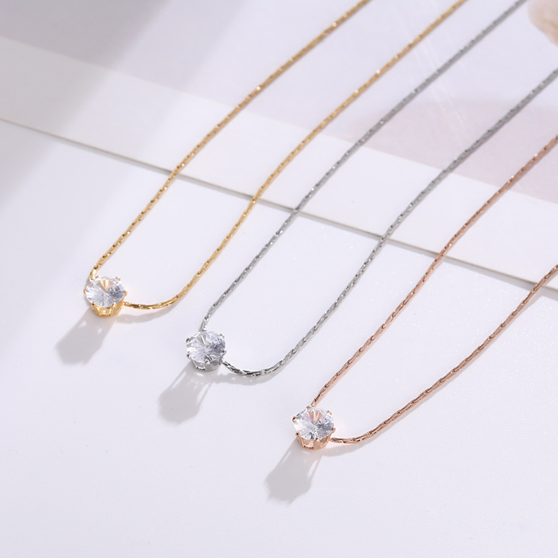 Jewelry Elegant Six-Claw Single Diamond Zircon Knot Necklace Clavicle Chain Girls Simple Eight Hearts and Eight Arrows Zircon Diamond Wholesale
