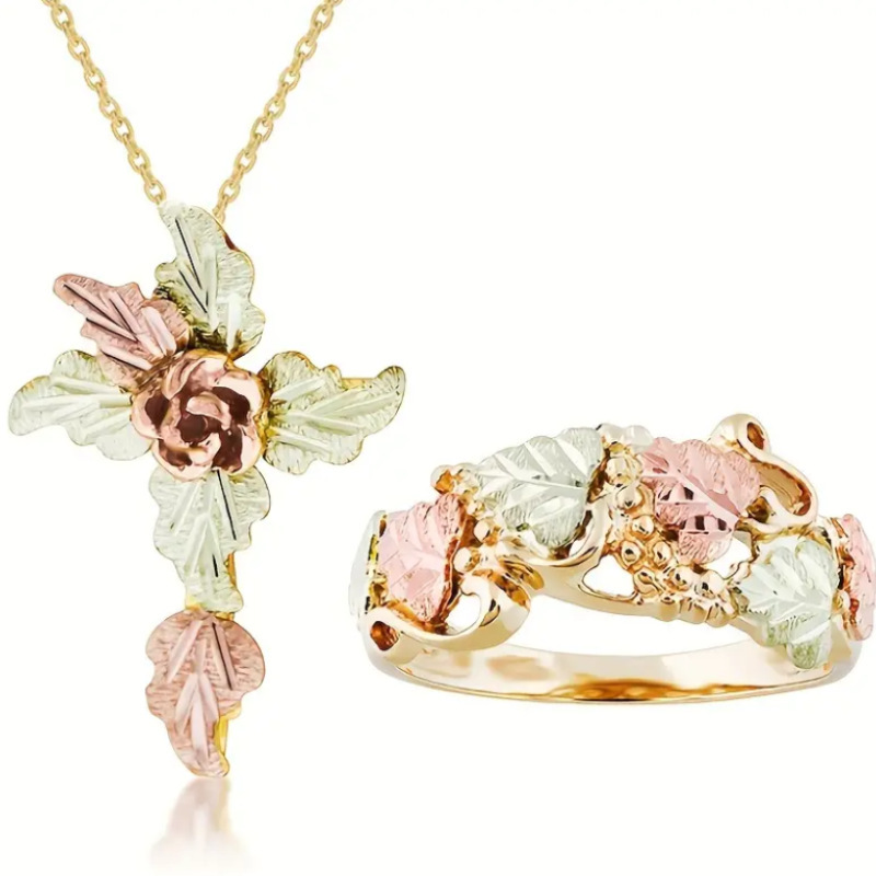 Elegant Leaf Design Necklace and Ring Jewelry suit Women Holiday Daily Party Decorations