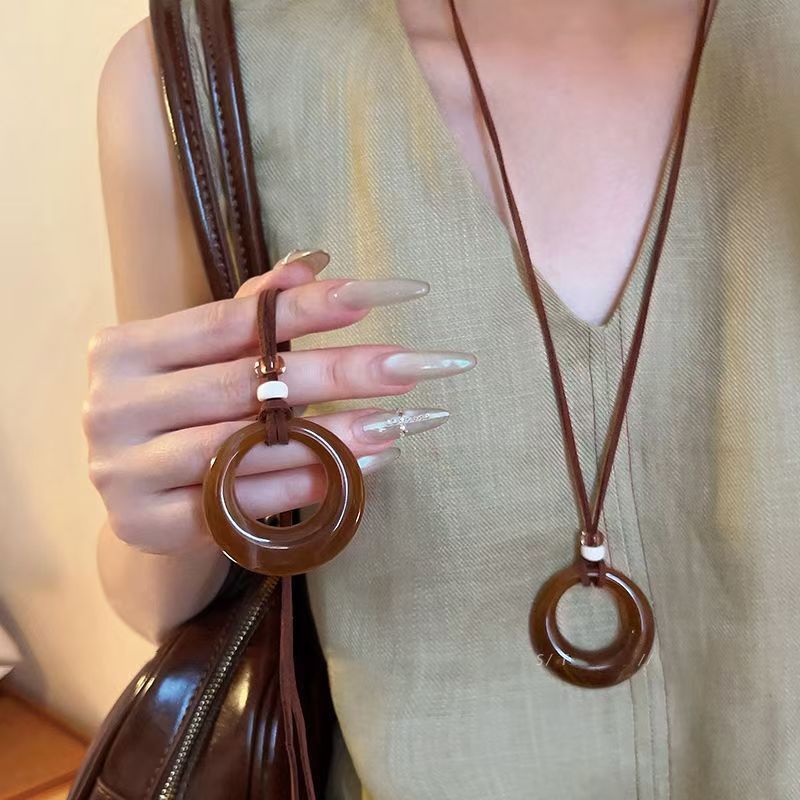 Retro Ring Pendant Long Necklace for Women 2025 Summer New High-End New Chinoiserie Niche Simple Necklace Accessories