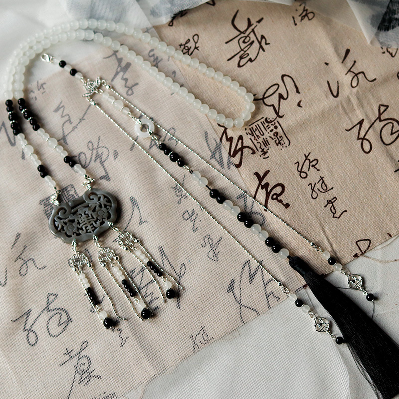 Ancient style hanfu necklace detachable back Cloud ink painting jade pendant vintage accessories ancient costume cheongsam Jewelry pendant