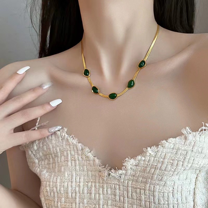 New Vintage Emerald Necklace Women's New Fashionable High-end Design Sense Niche Clavicle Chain Elegant Niche Emerald