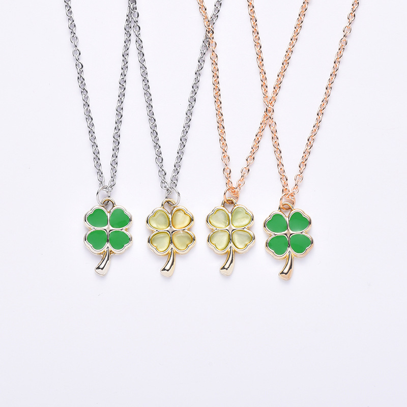 Fresh and Simple Four-leaf Clover Opal Necklace Niche Girl's Best Friend Oil Drops Green Lucky Grass Pendant Clavicle Chain