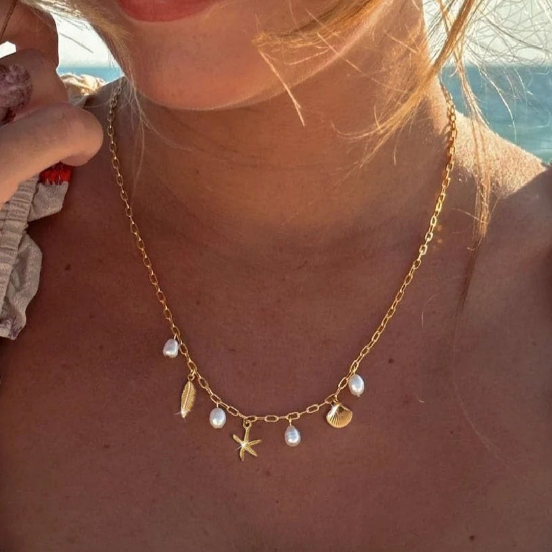 European and American Cross-Border Hot Selling Starfish Pendant Necklace Women's Fashion Personality Holiday Style Imitation Pearl Shell Clavicle Chain Necklace