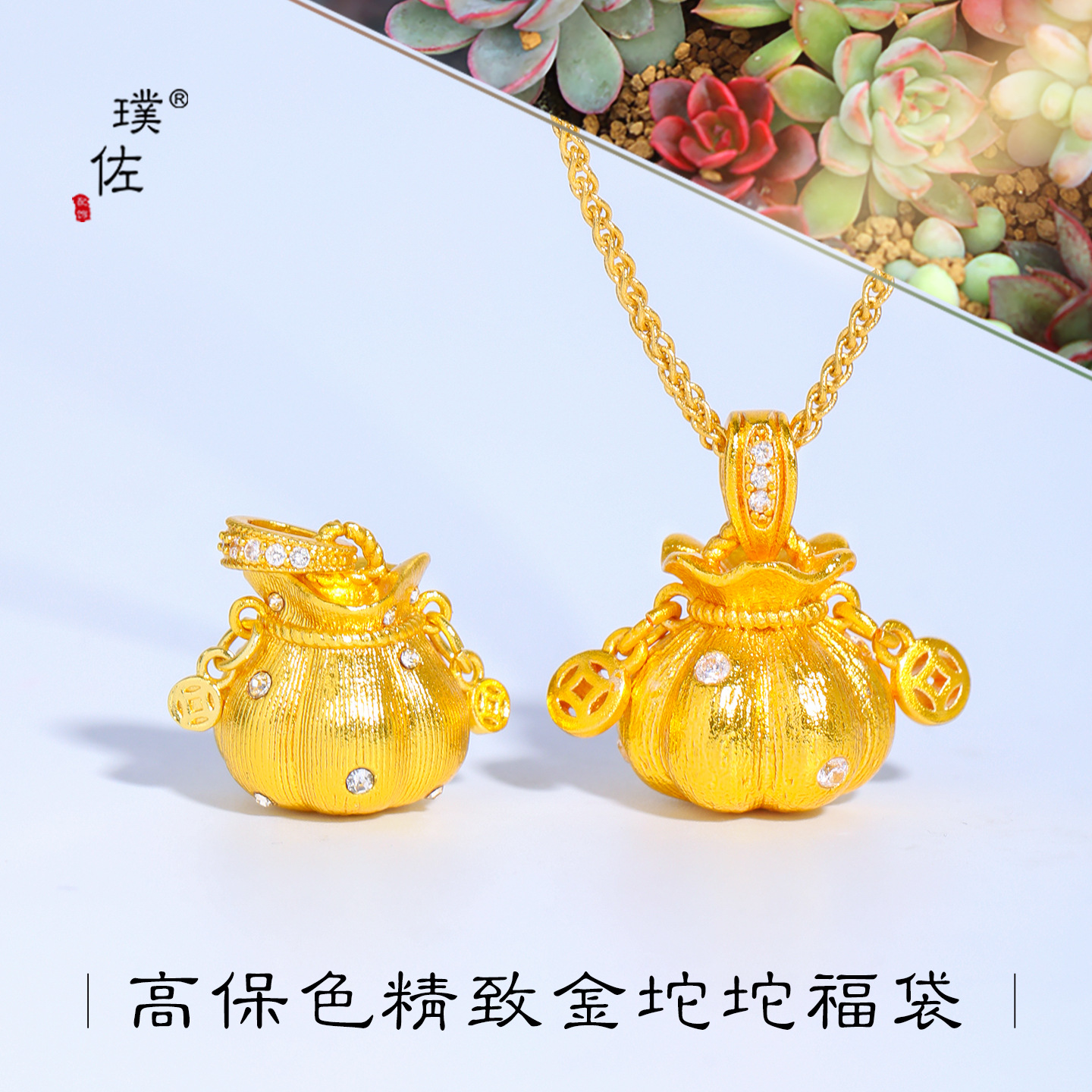 Puzuo Zhoujia's Same Style Sand Gold Brushed Diamond Pumpkin Lucky Bag Pendant New Chinese Style Wealth Flowing Copper Coin Necklace for Women