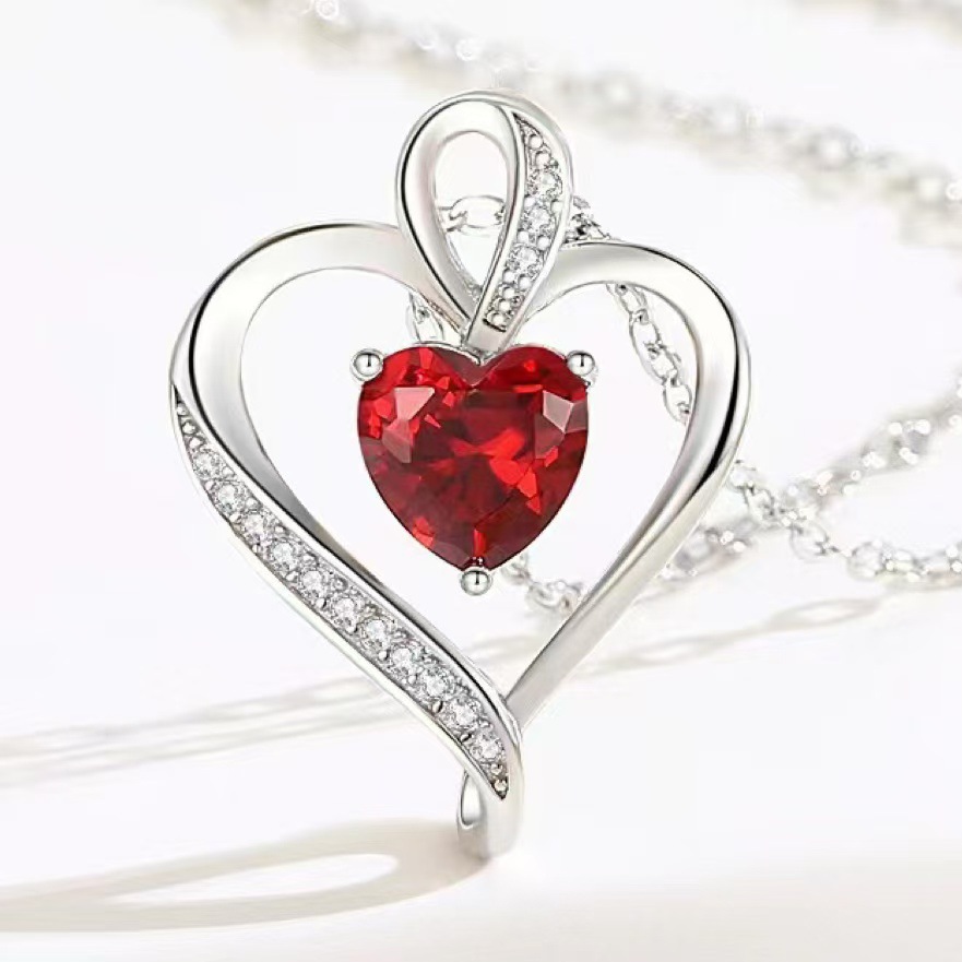Cross-border new love diamond necklace European and American style multi-color heart-shaped diamond pendant elegant all-match clavicle chain female