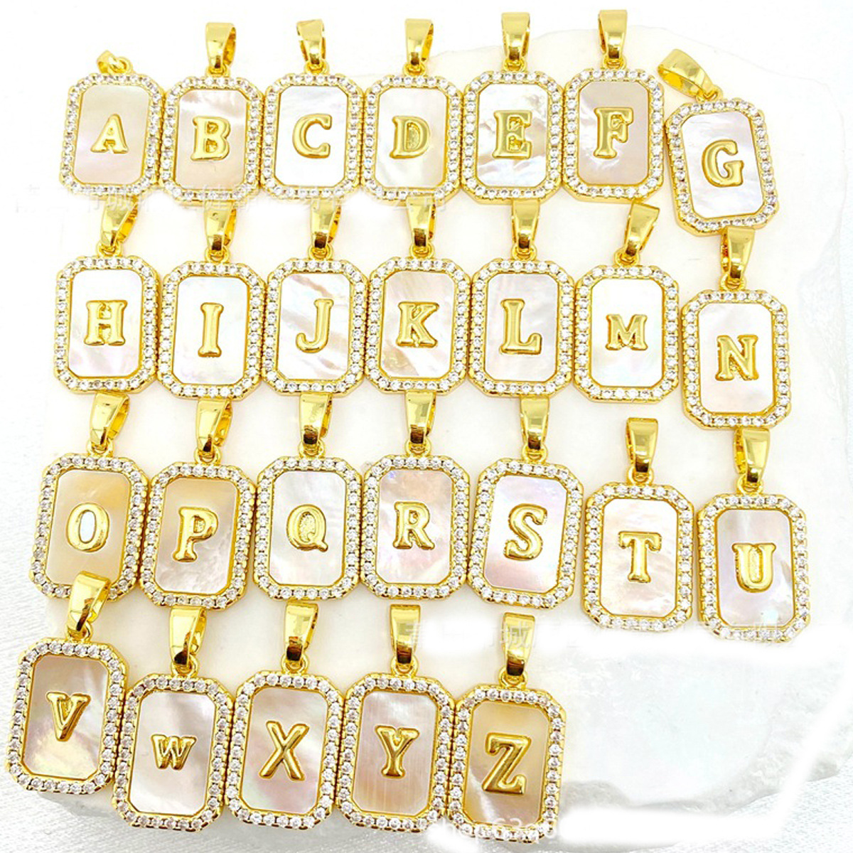 Cross-border Fashion Simple Micro Zirconium 26 Square Shell Letter English Letter Women Pendant Necklace Pendant