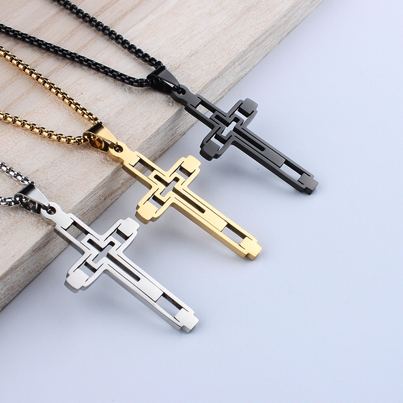 2025 New European and American Cross Necklace Men's Simple Long Gothic Retro Stainless Steel Women's Pendant