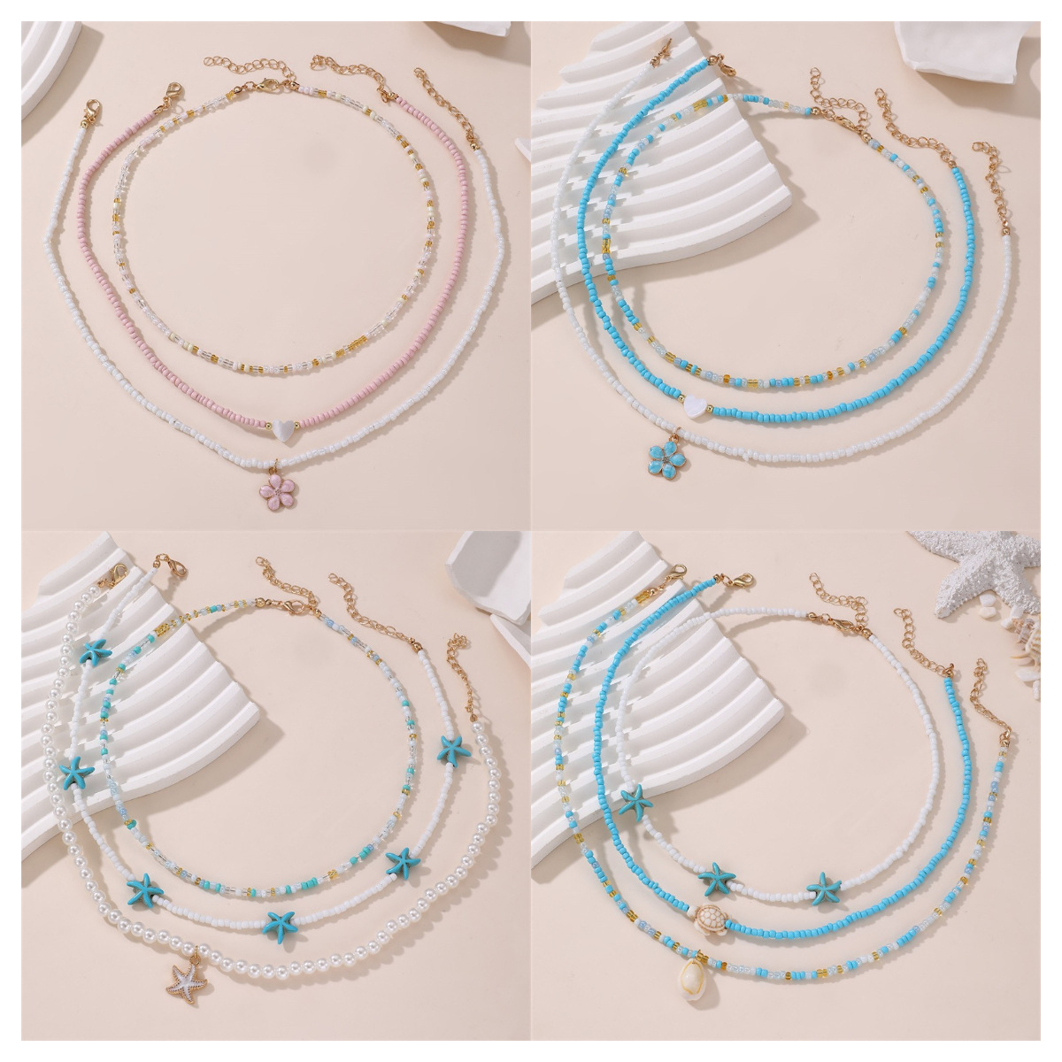 NZ3186 Cross-border European and American Rice Bead Necklace suit Women's Bohemian Beach Fashion Love Summer Women's Necklace