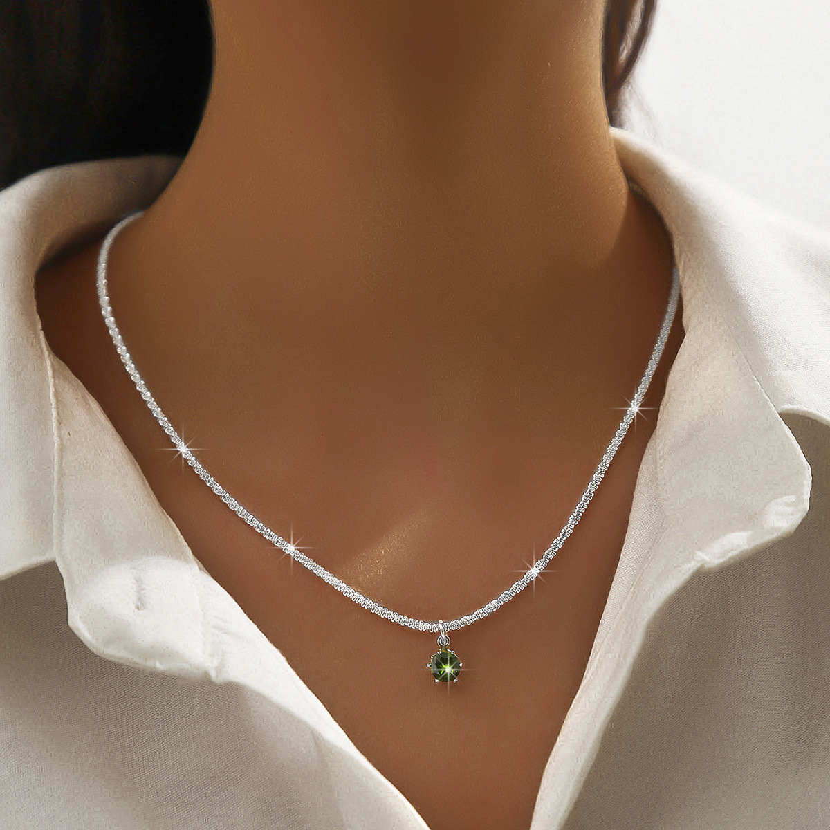 European and American cross-border popular minimalist cold style green diamond elegant necklace high-grade light luxury flash clavicle chain ladies