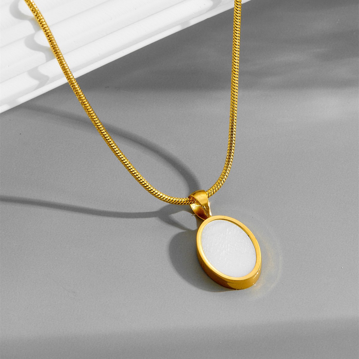 European and American 18K color titanium steel white shell otbuckle square brand pendant necklace light luxury all-match niche design clavicle chain women