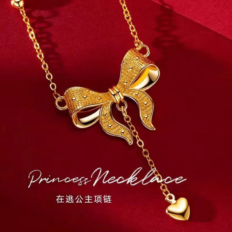 Vietnam Sand Gold Bow Pendant Women's All-match High-end Princess at large Necklace Clavicle Chain Live