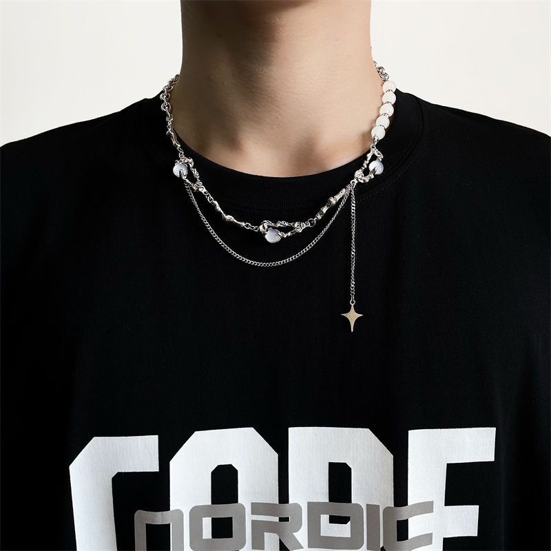 Niche design high-grade opal beaded stitching tassel four-corner star necklace Women's Light luxury style men's clavicle chain