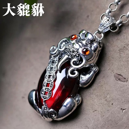 Vintage Garnet Pixiu Pendant Women's Personality Necklace Men's Dominant Fortune-Attracting Solid Pendant